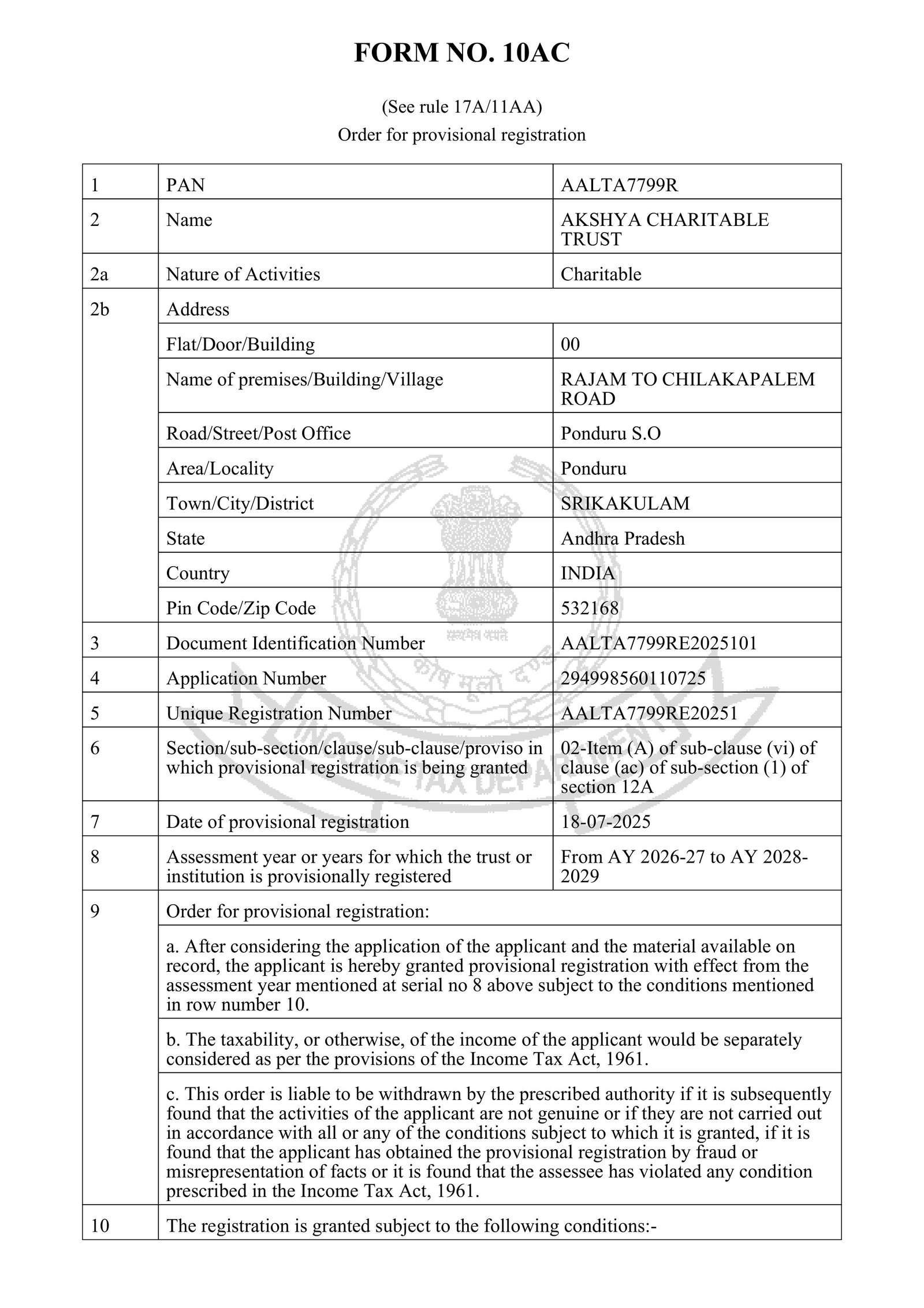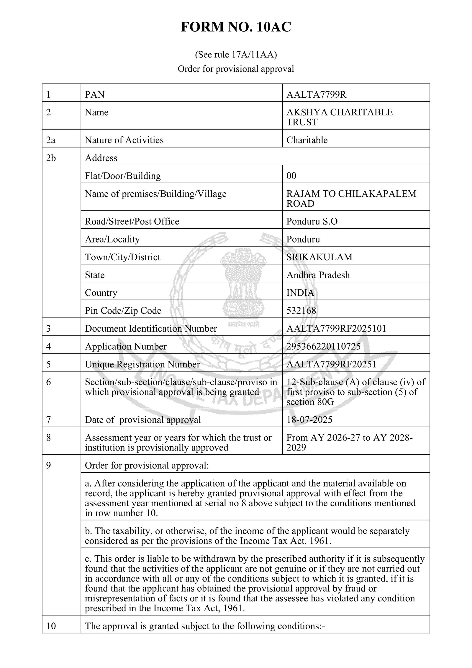 The AKSHYA CHARITABLE TRUST